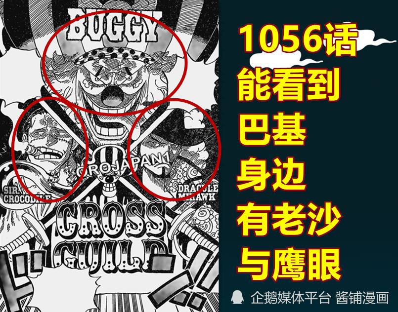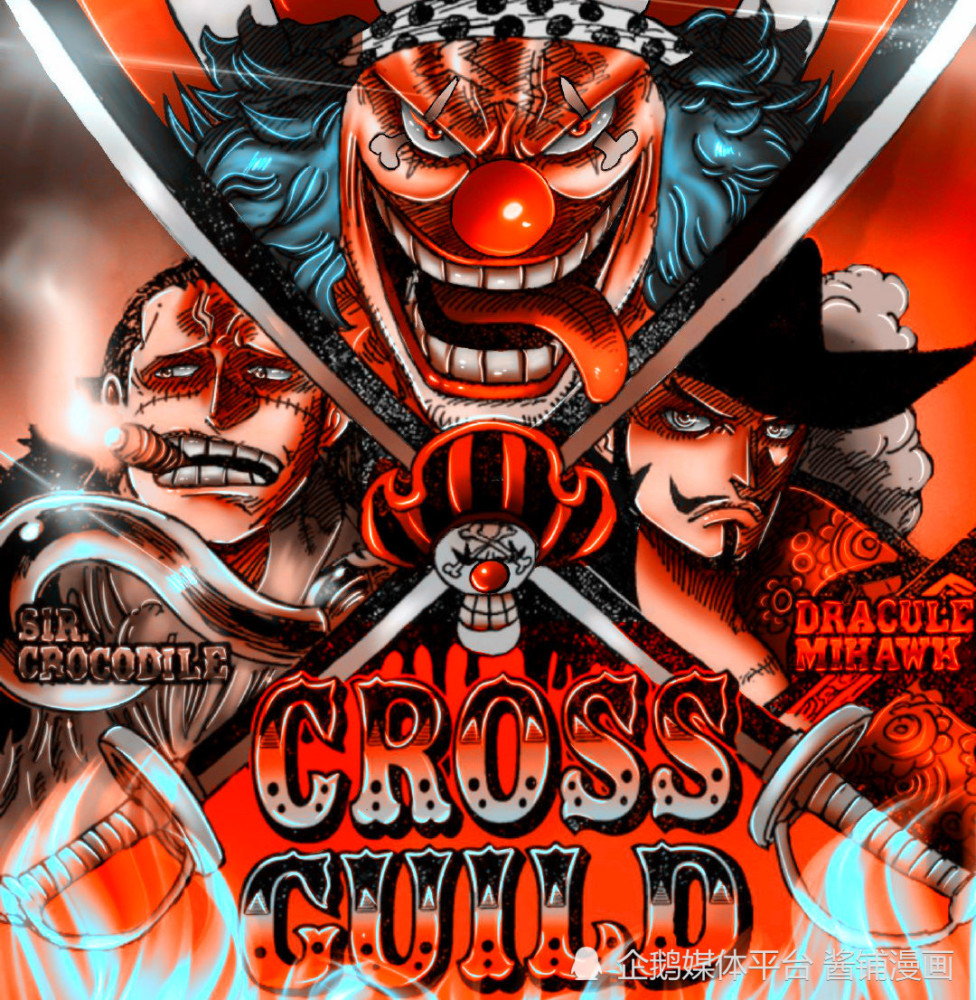 第四,在最新的漫画中,重点仍然是其他四皇,比如巴基的新团队。在几个月前,七武海开始组合,由沙鳄鱼克洛克达尔与鹰眼米霍克等人,与小丑巴基一起建立了一个全新的组织,那就是【十 字公会】。有趣的是,在给出的这个团队的分镜画面,巴基颇有四皇的气质,头像在咖位,老沙与米霍克则分别在两侧,像是四皇副手的存在。五老星一直认为巴基是团队的头领,报纸上也是这么说明的。这个团队之前情报已经讲述了,拥有独特的悬赏令,是海贼来专门找赤犬与黄猿,还有绿牛和藤虎等的麻烦的悬赏金。酱铺君认为,巴基只是放在前面的人,主要老大依然是老沙与米霍克。