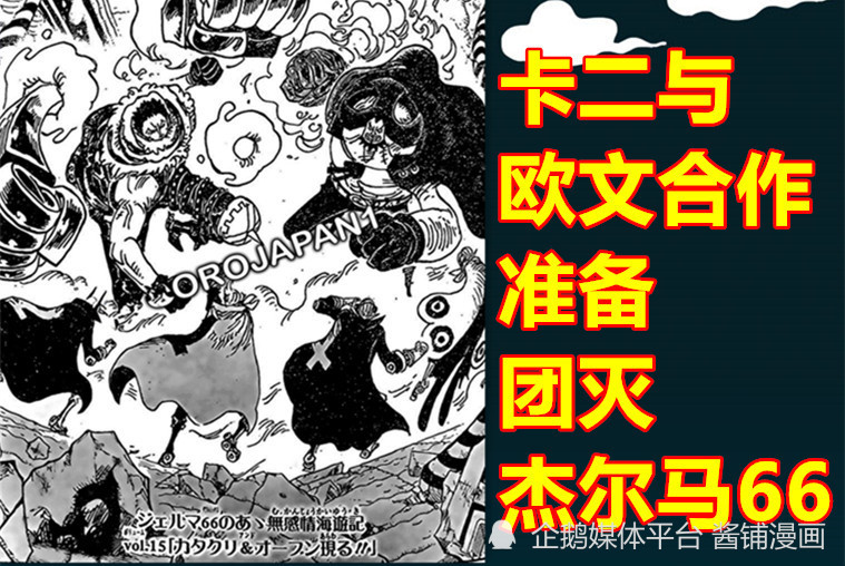 第二,卡塔库栗与欧文出击,杰尔马66的四姐弟基本没有办法获胜,之前长子伊治与卡塔库栗曾经单挑,被轻松击败。所以杰尔马66有团灭的可能性,就看作者尾田荣一郎如何继续描述。