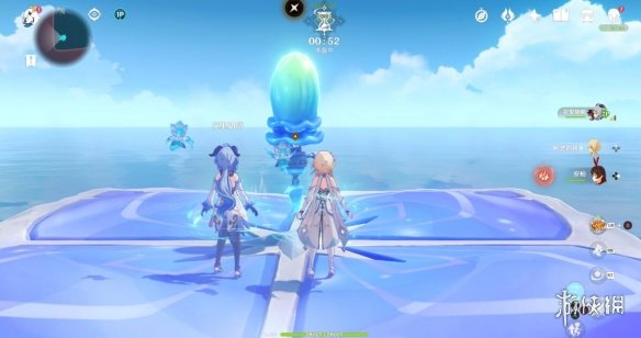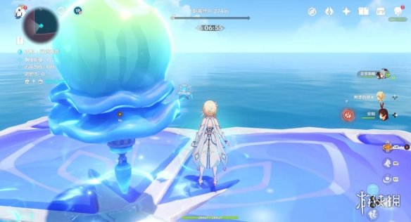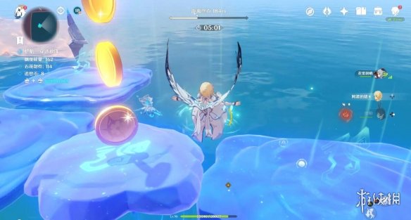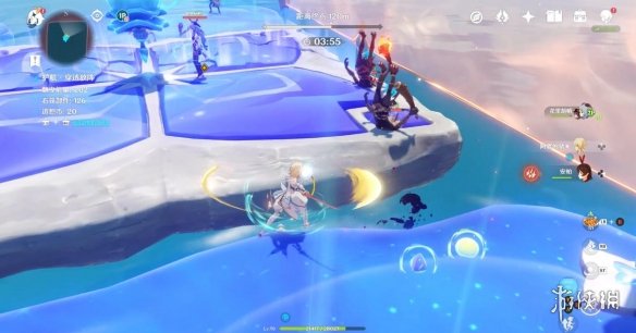 和之前一样,将丘丘人击入水中即可,不用打败他,石筏靠近平台,丘丘人浮现,石筏远离平台,丘丘人消失。