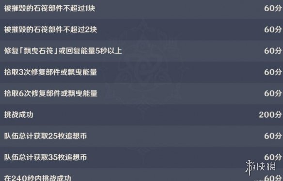 4.修复「飘曳石筏」或「回复能量」5秒以上,60分。
