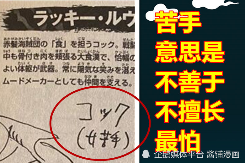 有趣的是,尾田在【拉奇鲁】人设图草稿周围写了很多备注,比如标注了【厨师】与【女苦手】.