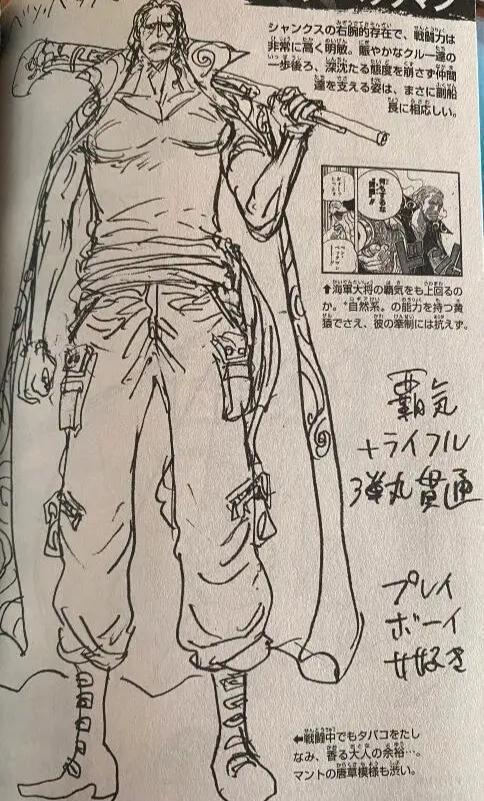 贝克曼的能力和香克斯差不多,都是将霸气用作输出手段的角色。贝克曼的武器是一把来福枪,他可以打出带有穿透效果的子弹。