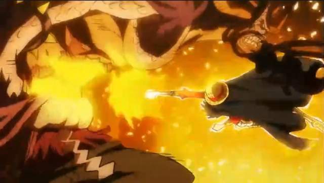 路飞觉醒霸王色缠绕技能,一拳打飞四皇凯多