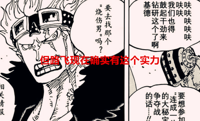 所以基德才会内心很不爽,这也证明了一件事,路飞心里是有数的,不然他不会说出这样的话,给予路飞这样的底气,来源就是因为他的五档,目前来说,能够抵挡住路飞五档的人,应该就是伊姆了,其他人可能都不是路飞的对手了,毕竟凯多都能败给他,就不用说其他人了,所以基德被路飞赤裸裸地羞辱一下,但基德又不得不承认这个事实。