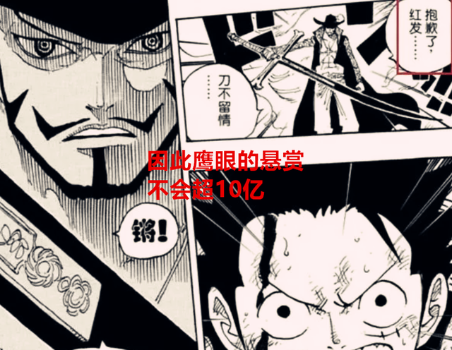我们先来看看红发的悬赏,根据剧场版的描述,一开始的红发其实也不强,他的经历跟路飞很相似,都是一人一条船,然后慢慢组建属于自己的队伍,在罗杰去世之后,红发就愈发强大,他的战斗力瞬间提升了,继而成为了海贼的标杆,27岁的红发悬赏也就10亿左右,之后就成为了四皇,悬赏就水涨船高,可现在的问题来了,年轻时候的红发悬赏仅10亿,那么就能推测出鹰眼的悬赏了。