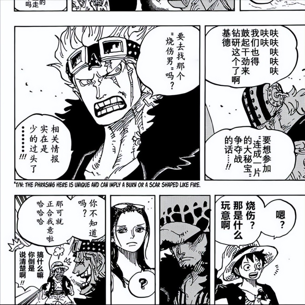 根据小爱的观点,这个烧伤男有很大的可能就是青雉,毕竟他的身上就有大面积的烧伤,确实有可能被基德称呼为烧伤男。而且最后罗宾的表情也耐人寻味,毕竟罗宾和青雉的关系可不浅,所以烧伤男是前海军大将青雉的可能性最大。