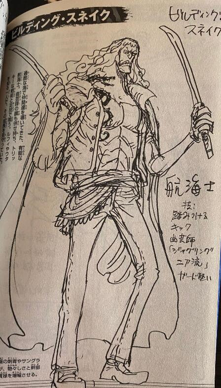 比尔丁·斯内克是航海士,也是一名出色的杂技师,他的战斗方式是剑术和踢技,好家伙,索隆、山治、娜美三合一是吧?这人要是加入草帽一伙,肯定是副船长没跑了。还有杂技师这个职业,我记得巴基手下也有一个,而且那家伙好像也用剑……