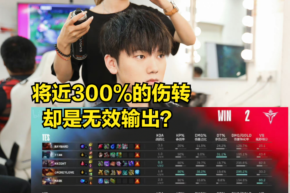 在阿水被人喷是TES战队的短板之后,也有不少的阿水粉丝认为这场BO3的比赛失利跟阿水并没有特别大的关系,尤其是第二局的阿水,凭借轮子妈还打出了将近300%的伤转,就这种伤转就不应该背锅,甚至有阿水粉丝怀疑某些阿水黑粉只看TES输比赛的结果,而看不懂选手数据图。(你们觉得TES下路双人组今天的比赛表现如何?)