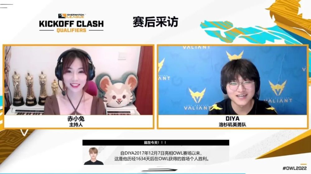本赛季“开战锦标赛”资格赛的尾声阶段,备受瞩目的洛杉矶英勇队在老将Diya的率领下夺得首胜,这是Diya在OWL舞台上为自己赢得的首场胜利。比赛之后毫无悬念地接入了Diya的赛后采访,刚刚实现自我突破的Diya一时语塞,不知如何回答采访问题。赤小兔机灵地接过话匣子,向大家述说了一长段Diya的奋斗历程替他圆场,待他平复心情后继续完成当天的采访环节。