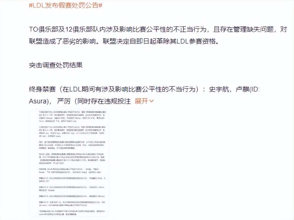 这两位选手都遭到了永久禁赛的触发,还有tianci、why等选手也遭到了相同处罚。一些情节较弱的选手则受到了几十个月的封禁惩罚,同时还有两家俱乐部取消了LDL的参赛资格,如此大阵容也可谓是前所未有了。
