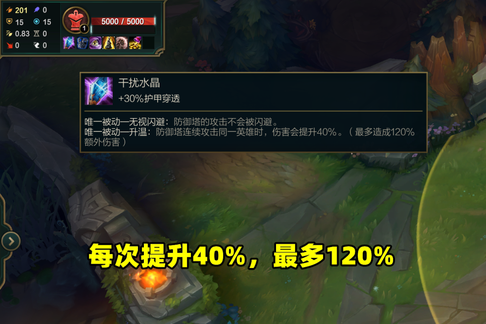 经常有关注比赛的玩家应该都有发现一件事,现在LPL的比赛前期的声音并不比以前小,甚至打野二级抓下,三级越塔的情况也并不少见,这一现状顿时就引起了玩家们的疑惑,为什么防御塔加强成这样了,还是可以轻松越塔呢?对此,有玩家开始研究起了防御塔的伤害,发现防御塔的机制貌似出现了一些问题。在正式服的防御塔装备介绍中,我们可以很清晰地看到干扰水晶的作用。