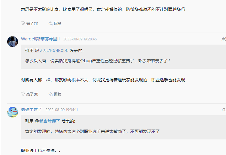 对于这种机制的问题,有玩家拿出了峡谷相对论来对比,直呼防御塔打你是这样,打我也是这样,不影响游戏平衡。但其实不是如此,对于优势方来说,越塔变得更简单这是有好处的,而对于劣势方来说,被越塔变得简单这就难以接受了,很明显对于双方来说并不是等价的。因此,残影觉得还是得尽早修复下防御塔的问题,大家觉得呢?欢迎在下方留言评论哦!