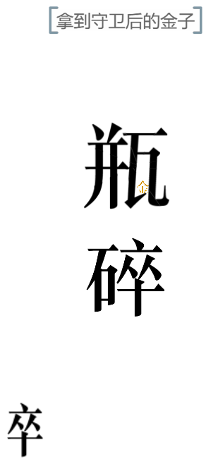 3、然后用【碎】字砸【瓶】,砸碎之后就可以得到里面的【金】字了。