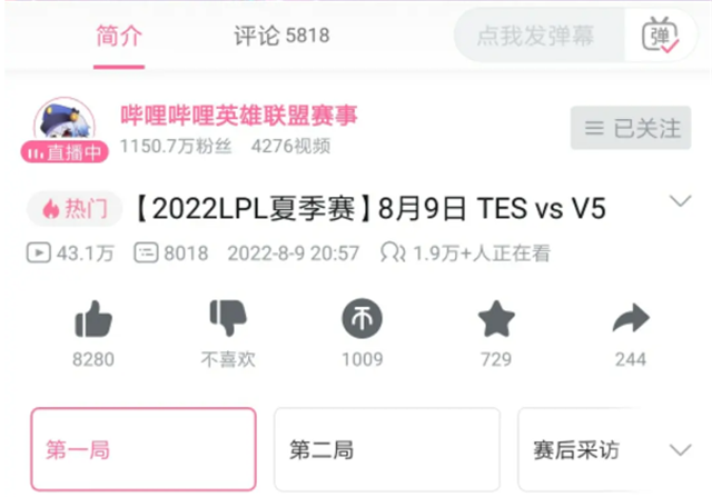 就像这次TES输掉比赛,观看量堪比一些顶尖战队。打完比赛的深夜,观看这场比赛的人数达到几万,最高有3.7万人一起“复盘”他们输给V5的过程。显而易见,这些大部分都不是TES的粉丝,而是看不惯他们的人。