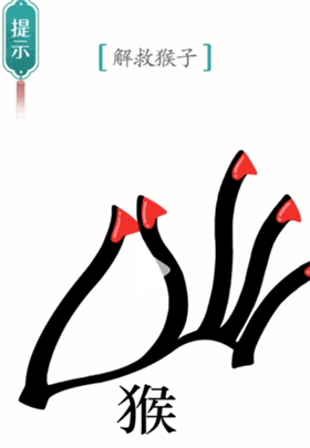 2、在每个竖行上涂上指甲油,山字变成手,在她欣赏手的时候就可以解救猴子了。