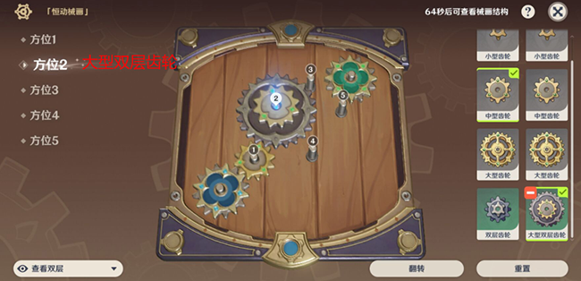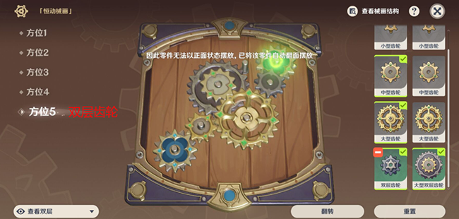 1、方位1中型齿轮。(在放置齿轮之前,确定是“查看双层”,“翻转”就可以,如果遇见无法转动的情况,翻转一下就可以。)