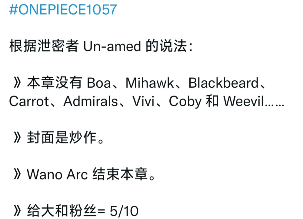还提到1057话是【和之国篇】正式完结的一话,草帽团以及基德团、罗团一起离开和之国,踏上新的冒险。
