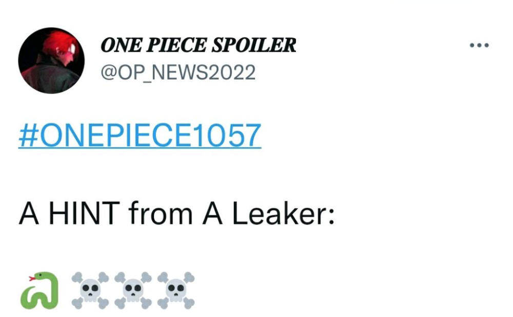 一条青蛇和三个骷髅头,第一感觉就是女帝汉库克以及黑胡子,对应汉库克代表的动物是蛇,而黑胡子海贼旗便是【三个骷髅头】。