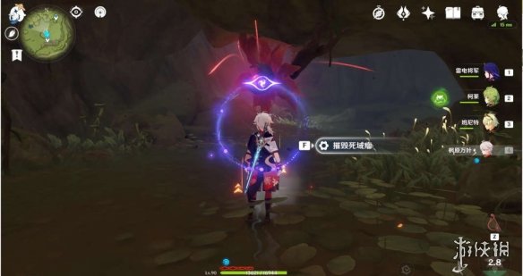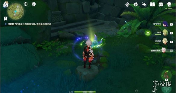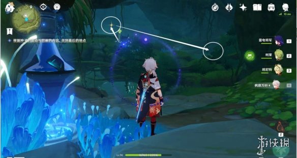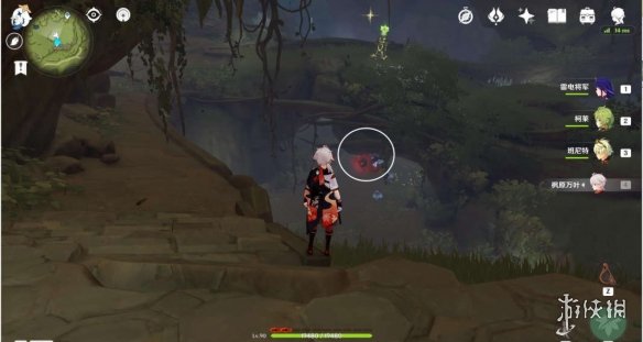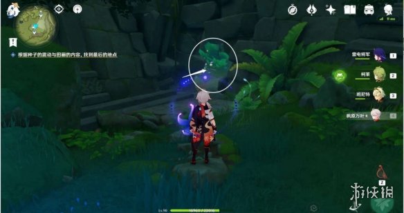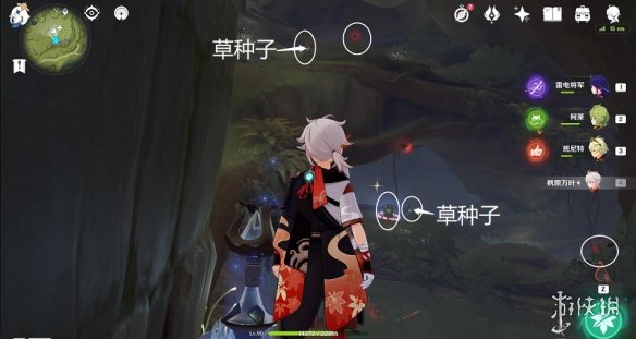 往地图的西北方向看,召唤草种子,利用重击或者瞄准射击攻击图中指引的两处死域枝节,解锁草元素方碑,激活草元素方碑水位下降。