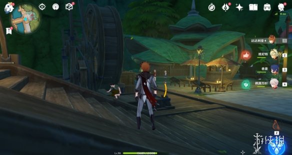 1.首先我们先传送到奥摩斯港,随后往前跑,将视角给到左手边的房子。