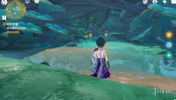 前往无郁稠林,来到这个位置,找到npc海亚姆,和他对话。