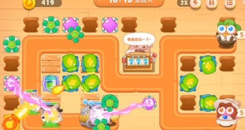 1.这一关小伙伴固定能放置的炮台只有瓶子炮,开局我们需要先在左边放置一个瓶子炮保证开局的敌人不会漏掉,前期布置好瓶子炮的同时,手游出现了新的角色,维克兔。