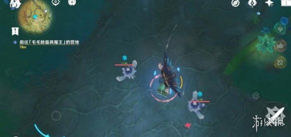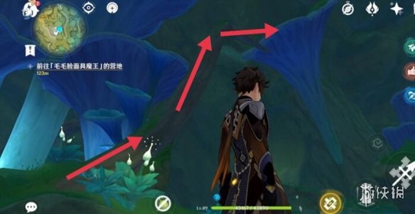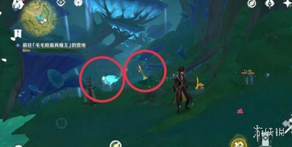 对话后他会让去丘丘人的营地,注意这里不要出去!营地在洞里面!继续往洞里面走,可以看到快速移动的那个东西,营地就在最高的蘑菇上。这里还有一个仙灵,可以跟着他走,他会路过营地。