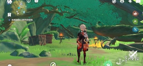 到任务地点附近派蒙会说话,把丘丘人都击败,进到兰那罗的房子里,桌子上有本笔记,对话。会给一个花朵护身符。