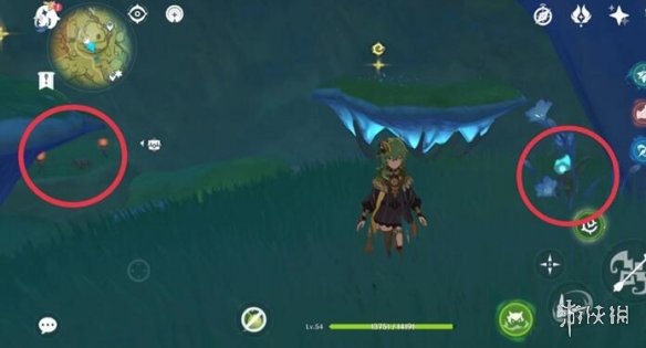 之后继续跟着仙灵走,可以拿一个普通,从仙灵座这里看,两个火把中间还有一个普通(可能是要把蘑菇上的丘丘人和木桩都打掉)。拿完接着往下跳,击败蕈兽还有一个奇馈宝箱可以拿,获得摆设图纸:旅团的征轮。