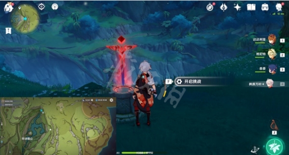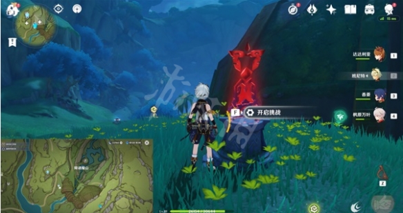 我们来到降诸魔山西南方向的点,我们会看到一个限时挑战,我们需要在100秒之内收集8个草之微粒(可以利用四叶印)