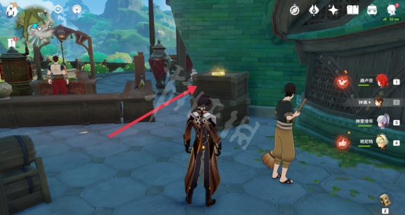 首先来到须弥城左下角锚点处,第一个玉帛就在兰巴德酒馆旁边。