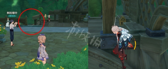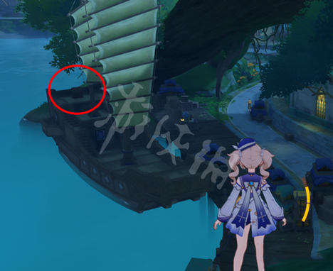 然后传送到奥摩斯港这个传送点,走过天桥,下图所标志的草丛里面有一个精致的宝箱。