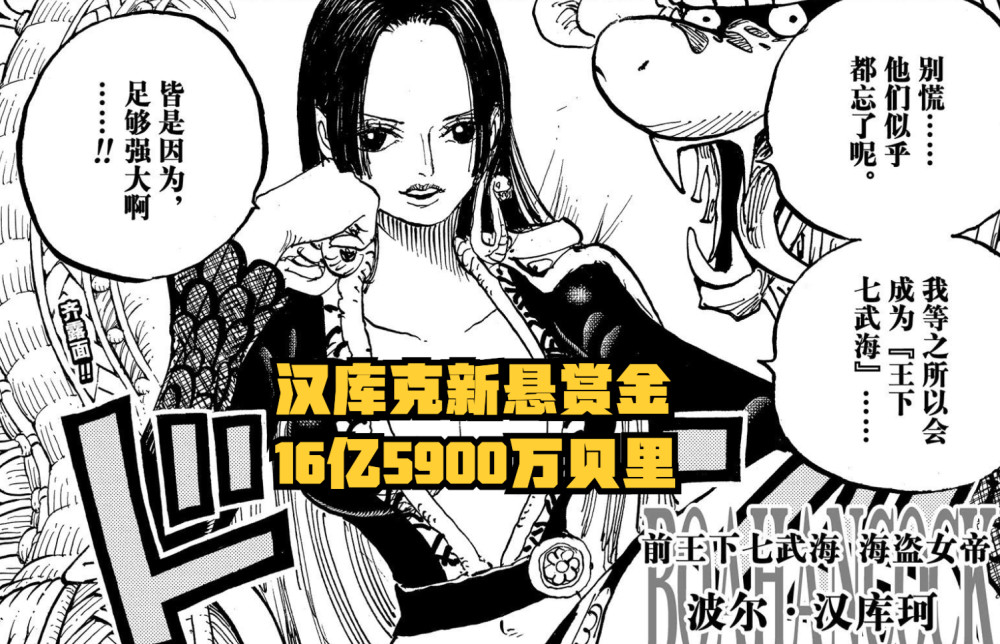 关于她的新悬赏金,是16亿5900万贝里。好家伙,小蜘蛛又一次被尾田打脸了!汉库克不如老沙?可惜了!对了,59是汉库克的谐音!