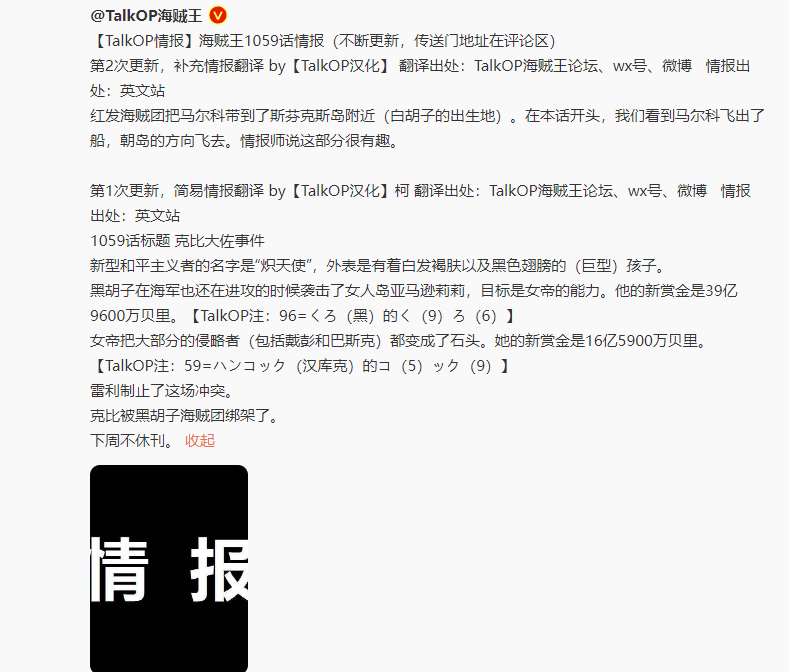 所有海迷们都在翘首期盼,希望海贼王漫画第1059话的情报早日到来,尤其是在谜语人释放半真半假情报,肆虐横行迷惑大家的情况之下,如今终于等到了可信度百分百的情报,诸方大佬齐登场,黑胡子和女帝悬赏金曝光,海军大战结束,雷利和红发香克斯以及马尔科行踪揭秘,随便一个都是炸裂的亮点,这一话着实有看头了。