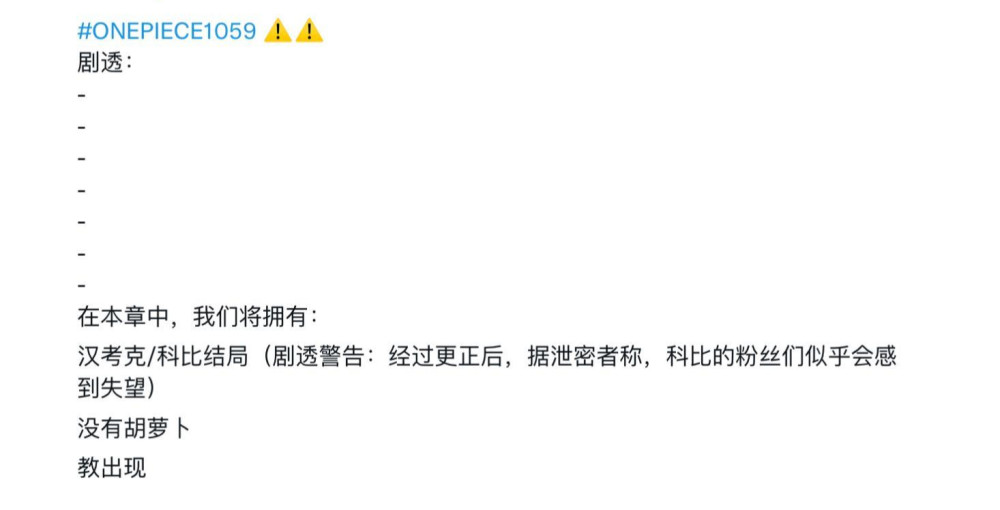 目前关于海贼王漫画1059话的谜语情报实在很多,基本可以确定本话会有四皇黑胡子、女帝汉库克以及克比登场的画面。