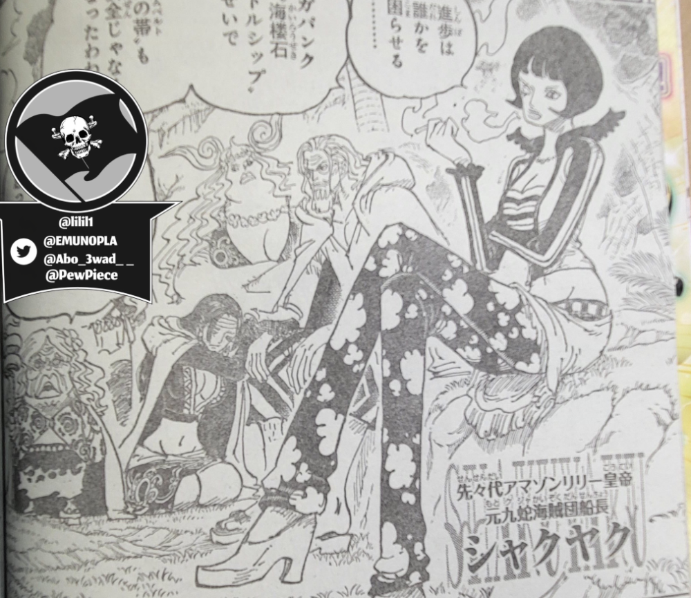 同样是上年纪的老太太,夏琪算是画风最另类和特别的了,毕竟尾田笔下的妹子脸基本上就2-3种,但是老太太是各有各的样子,唯独夏琪60多岁了看着和30多岁的时候一样。另外这里确定了夏琪就是女人岛亚马逊莉莉前前代皇帝。