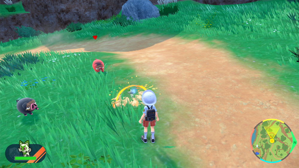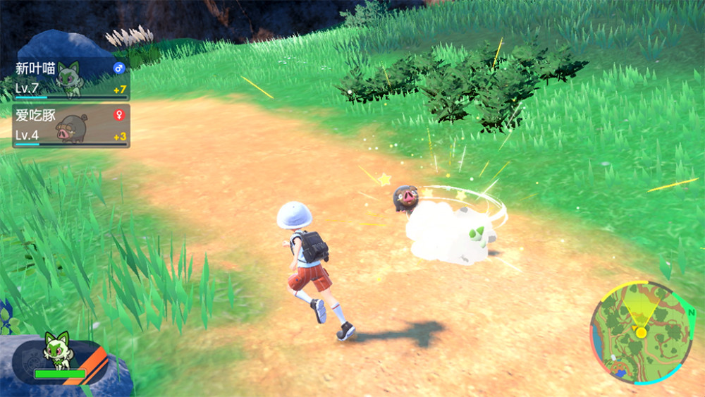 在帕底亚地区,玩家可以放出 1 只宝可梦和主角一起行动。通过下达「Let's Go」的指示,玩家就能让宝可梦前往指定的方向。与《传说 阿尔宙斯》类似,收到「Let's Go」指示的宝可梦会捡来掉落的道具,或是附近的野生宝可梦展开「自主对战」。