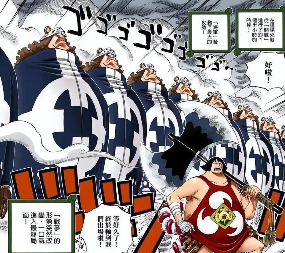 克比带领海军几艘军舰攻打女儿岛,其实这里还有一位中将在指挥战斗,这位中将名为火烧山中将,顶上战争中出现过几次,实力估计与鼯鼠中将差不多。他才是这次任务的指挥官,克比只是一个大佐,负责冲锋陷阵的。七武海制度被废除后,女帝早就准备好与海军交战了,双方的战斗很快就打响,克比带着海军攻打女儿岛的城门。