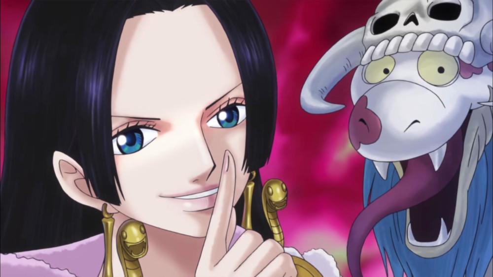 女帝在本话中表现不俗,面对海军与黑胡子海贼团的夹击,超乎常人的淡定。女帝用“奴隶箭”将很多敌人石化,其中就包括黑团中的戴彭和大酒。这两位是黑团中的主要战力,能将他们俩瞬间石化,可见女帝的实力还是非常强大的。正当女帝准备乘胜追击的时候,黑胡子突然阻止了她,一把抓住了女帝的脖子,并将其硬生生抬起。