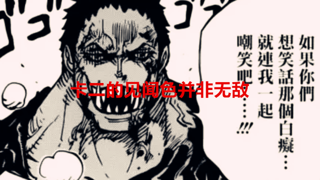 之前卡二和路飞对决的时候,我们能够看到的是,卡二直接用见闻色,预测到路飞的行动,然后限制路飞的发挥,让路飞吃尽了苦头,不仅如此,卡二还能看穿其他人的动作,可以说是十分牛的技能,但是现在看来,即使卡二能预见未来,也有其它的方法来让他中招,预见未来并不是无敌,也没有吹得那么夸张,那些说能预见未来就可以立于不败之地,相当夸张了。