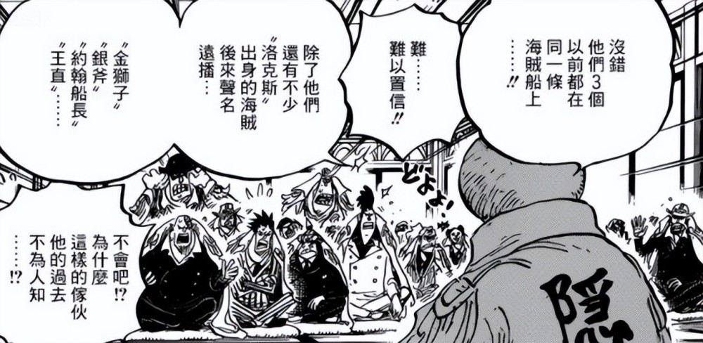 本话黑胡子与克比对话,称当初在洛基港事件多亏了克比,才打败了“王直”,成为了蜂巢岛的老大!我们暂且不看洛基港事件与克比的关系,单单是“王直”这个名字出来,就已经震惊很多海米了。因为根据之前剧情,王直可是洛克斯团的主要船员之一,其名号与凯多、大妈平齐,虽然不是四皇之一,但也是海上屈指可数的人物。
