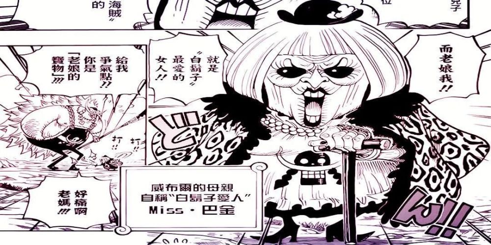 王下七武海之一的爱德华·威布尔的母亲,自称“白胡子”的女人,在白胡子陨落于顶上战争之后,便带领着儿子四处征战于伟大航路,一心想继承白胡子的财产。从马尔科的口中可以确定巴金还与白胡子曾在同一艘船上待过,还强调男女之间那点事他不好说,算是证明了巴金与白胡子之间有一腿。