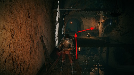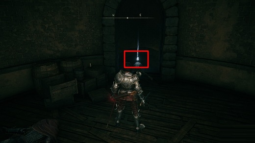 该武器位于史东薇尔城中。打败小黑屋中的失乡骑士获取老旧钥匙,随后打开上锁的铁门通过梯子向上。