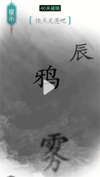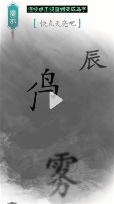 《汉字魔法》是一款最近在抖音爆火的汉字解谜小游戏,这一关的提示是快点天亮吧,而且图中的字是“鸦”、“雾”、“辰”,很多玩家看着云里雾里的,所以小编给大家带来了《汉字魔法》游戏破晓过关方法一览,感兴趣的小伙伴快来看看吧!