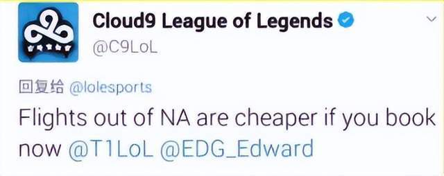 就在大家分析战局的时候,最近突然有一些战队出来说话了,比如C9,他们在抽签后口出狂言,居然劝EDG买票回家,当时的原话是:EDG、T1你们现在买回家的机票还挺便宜的。看完这个小编都笑出声了,C9估计自己也知道出线的可能性很低了,所以用这种方式调侃一下,大家也很捧场,都乐了。
