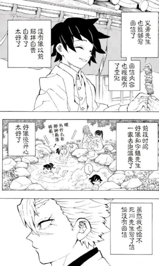 最明显的莫过于人际关系的改善,在还是柱的时候,尽管与其他柱都是并肩作战的队友,不过关系并不融洽,解开心结后的富冈义勇反而和其他人的关系改善了不少,甚至还和音柱一起泡温泉,不过场面多少有点尴尬就是了