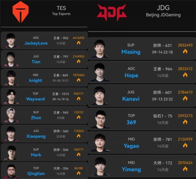 JDG战队也差不多,最勤奋的是辅助选手missing,另外的hope、yagao、yimeng都是14天没排位,369更是16天不露面了,这么长时间不打rank,到了比赛选手手感如何呢?