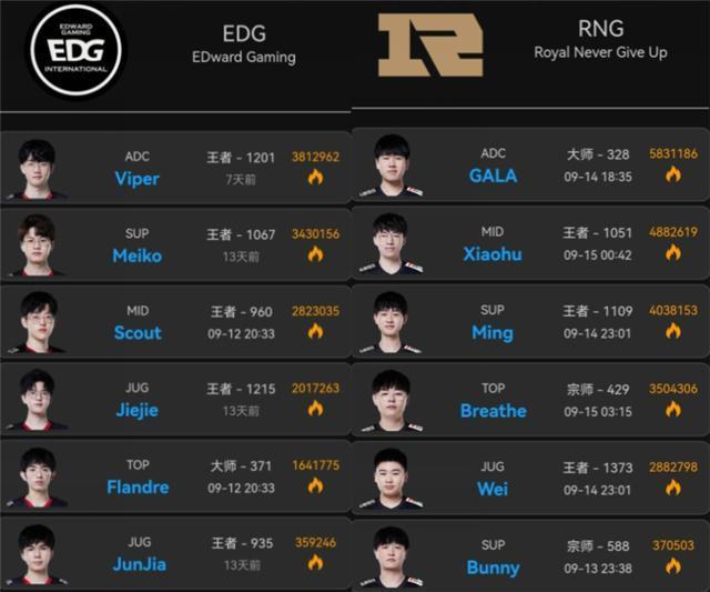 EDG选手稍微好一点,meiko、jiejie、替补junjia都是13天不rank,viper则是7天,RNG队员基本都坚持rank,只有xiaohu休息了几天,可能回家一趟,十四号就回来开播了。