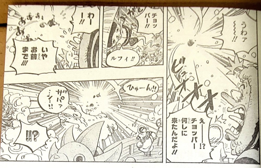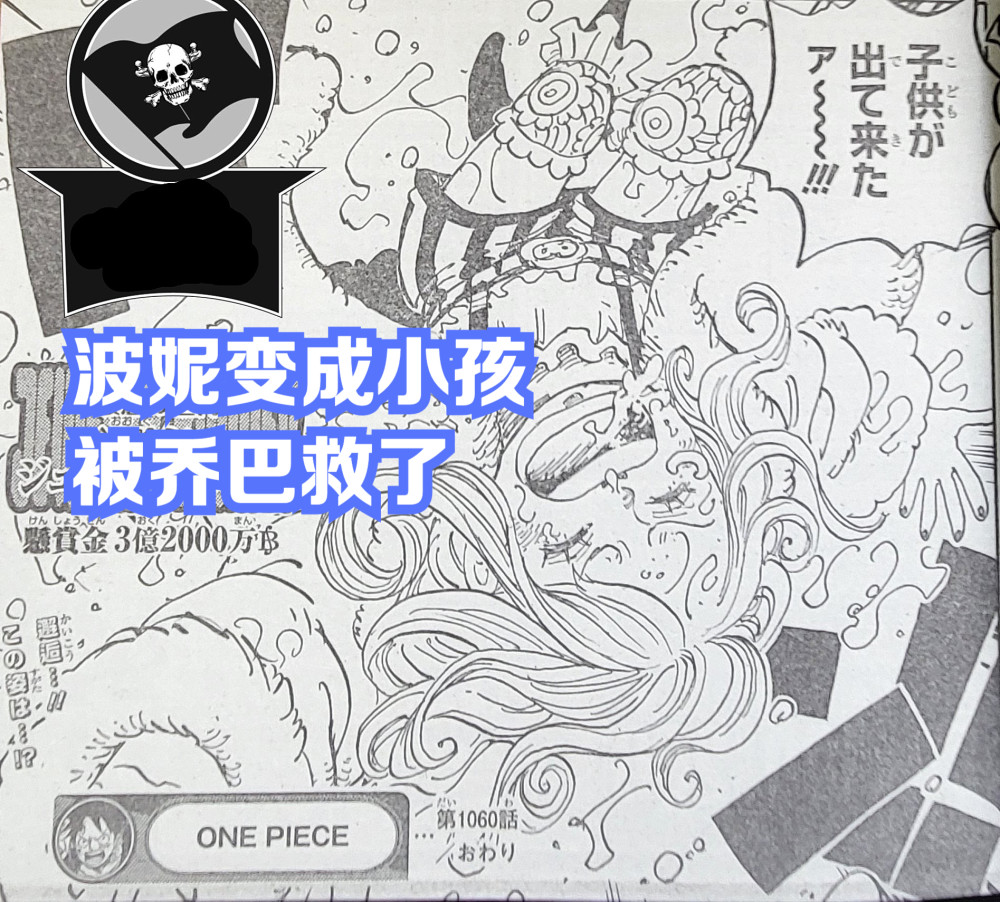 乔巴利用乌索普的弹射废了出去,由于是情报图根本看不清细节,只能模糊的看到乔巴飞出去后,在另一个分镜下出现了两个人影,一个是乔巴,另一个便是【波妮】。