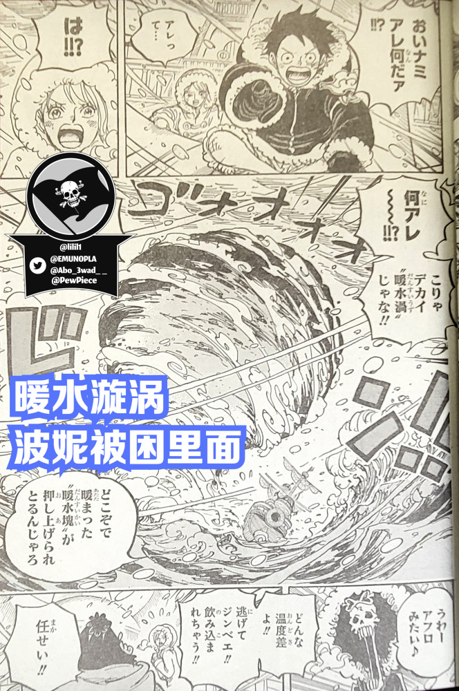 根据上面的台词提到貌似只有在温度极低的情况下才会出现这种【暖水漩涡】,也是因为这个特殊,让接下来要登场的【波妮】存活下来。